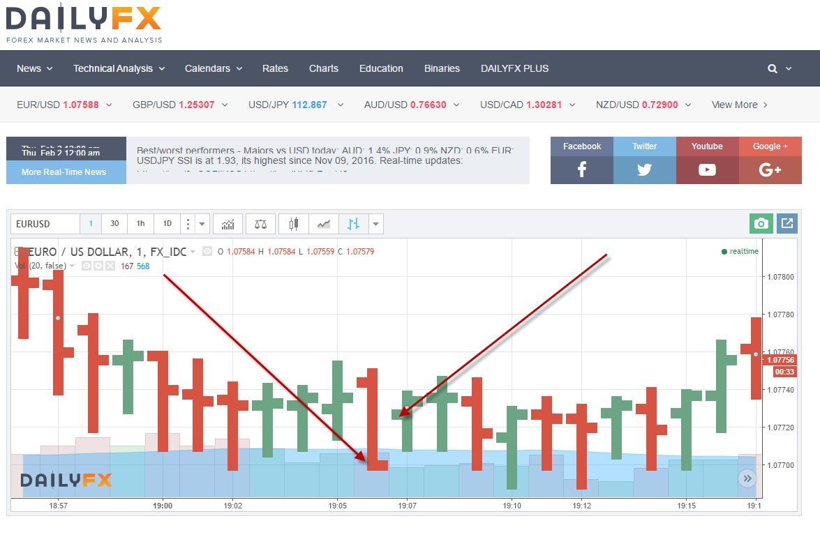 Firstly, that's an IDC chart.... Have you ever seen IDC's data up-close? Its ugly. They're not even a broker or a market maker. Here's the 1 minute IDC chart of EURUSD at the height of the most liquid part of the day, the NY open: