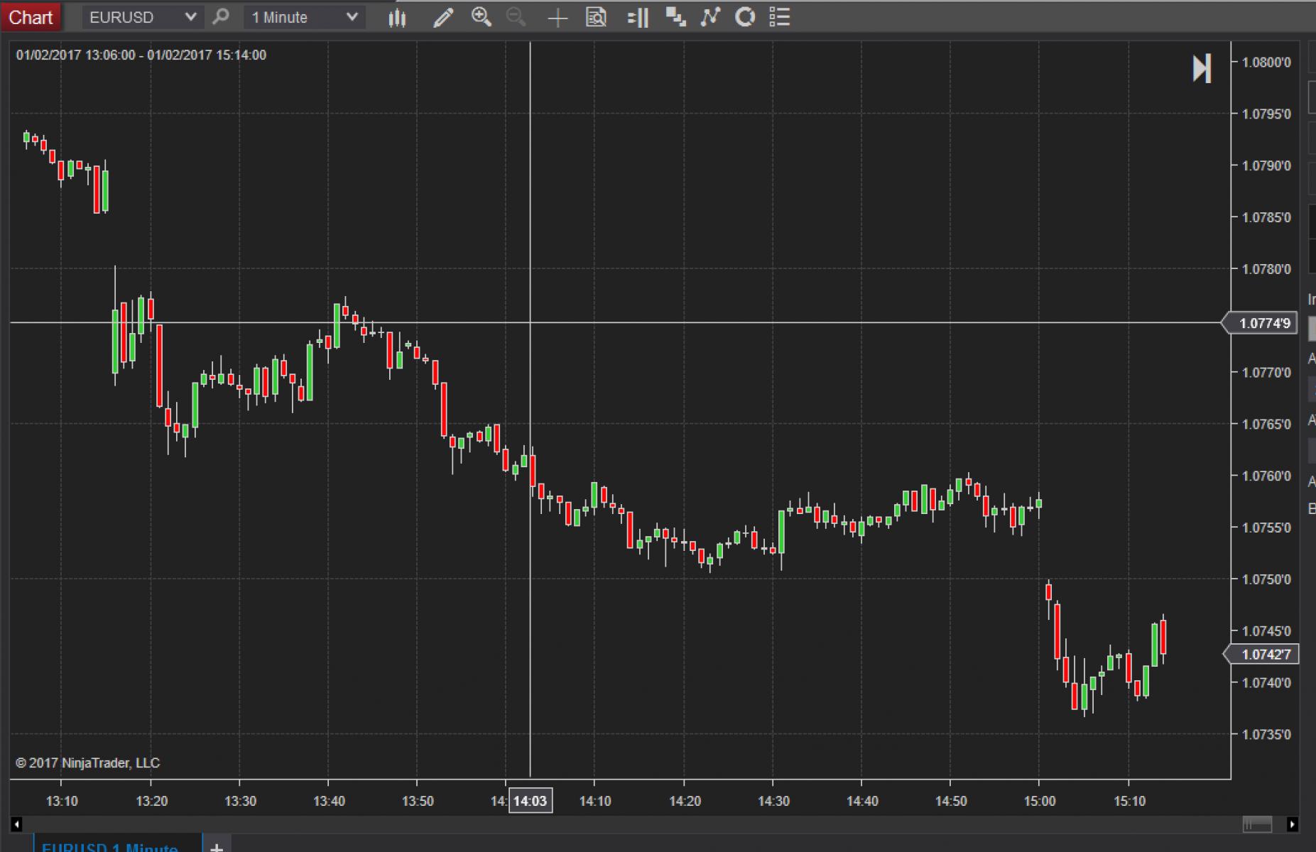 Gaps can occur intraday. This depends on what prices the banks are offering from moment to moment. not every tick is offered in between every movement. the large change in price here is properly displaying. If you look at a 1 tick chart you can see that there are often gaps, but they are typically smaller than this one.Last edited by NinjaTrader_PatrickG; 02-01-2017, 12:28 PM.