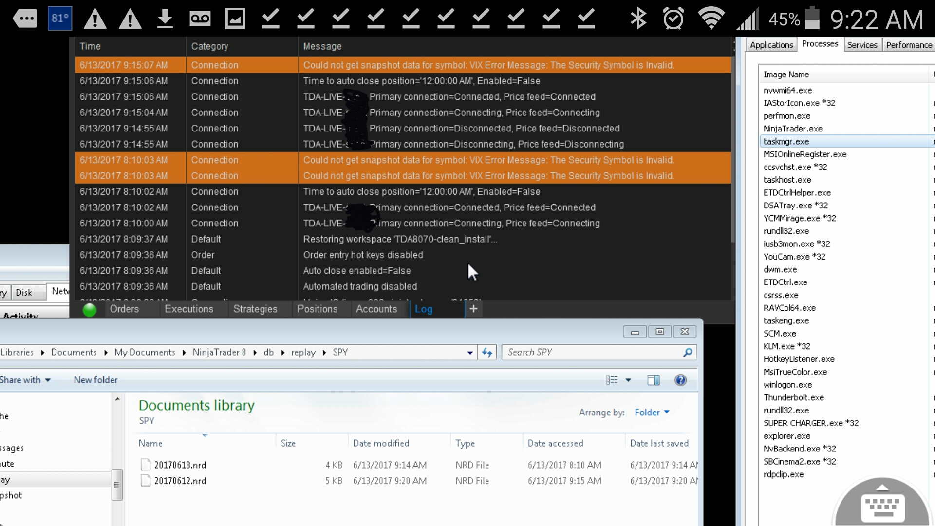Started nt8 this morning. Connected to tda. 1 file for today. After 15 minutes it was obvious nothing was streaming. Chart didn't move.