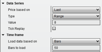 I am running strategies on 8 and 16 range charts that have "Load Data" set to 50 Bars.
