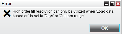 Can somebody explain why I get a dialog box that states "High order fill resolutions can only be utilized when 'Load data based on' is set to 'Days' or 'Custom Range'.