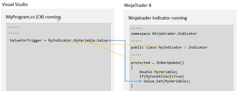 Maybe, if I can get data from an indicator, I can combine the execution of indicators within NinjaTrader 8 plus the execution of other calculations, all on the external C# program.