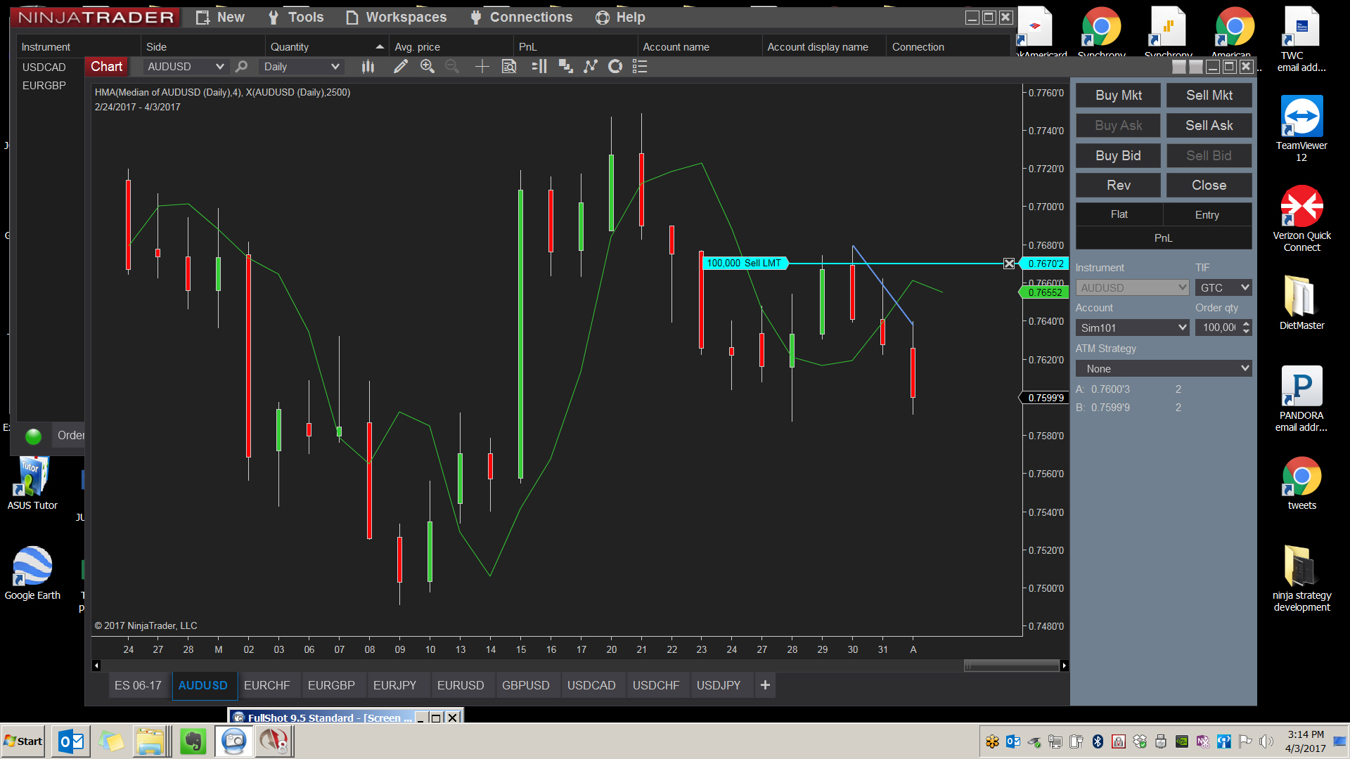 BEFORE RESTART ... with order on chart