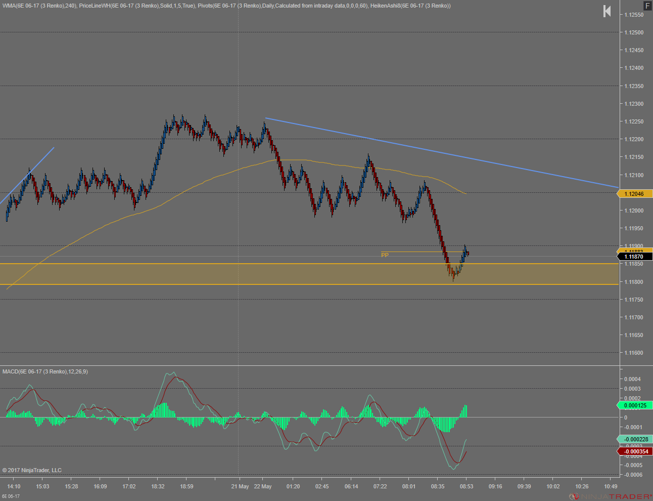 So when i draw a trendline on 1 chart for 6E, i have the setting on that it will draw that trendline on all my 6E charts that i have up, however they are not matching up and when i draw a trendline on the 15 minute chart for example, it is giving me an incorrect trendline on my renko chart. I have attached 2 charts to show you what i mean. Your help in finding a solution would be much appreciated,
