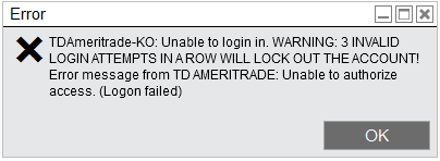 I went into Global Simulation Mode and turned that off, but when I try to connect to my TDAmeritrade data-feed, I get an error message that says: