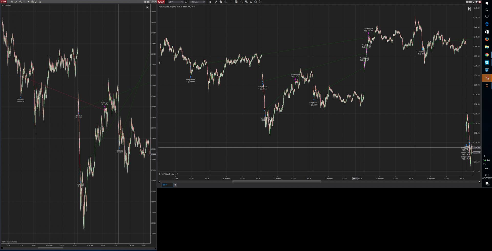 Please look at charts same trades different closes consideration. Rigth chart is correct one. Why the one on the left use different profit targets???