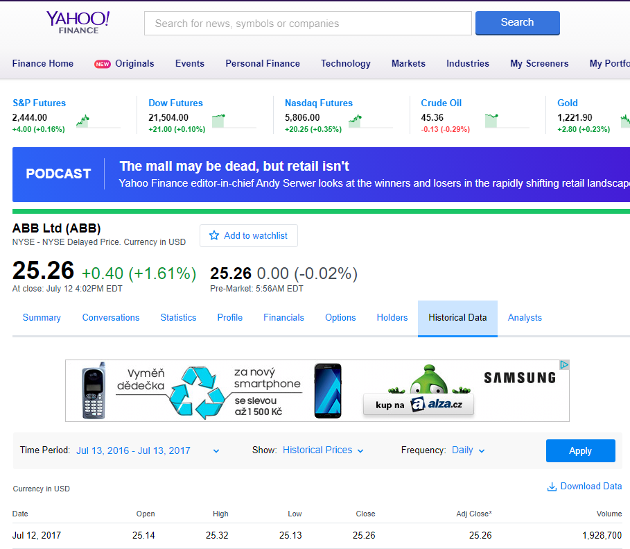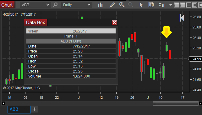 I am enclosing screenshots taken at the same time: one of the NT chart with the data box showing the date and the ohlc values, one of the same from TWS (I use IB exclusively), and one of Yahoo Finance for the same symbol (ABB).