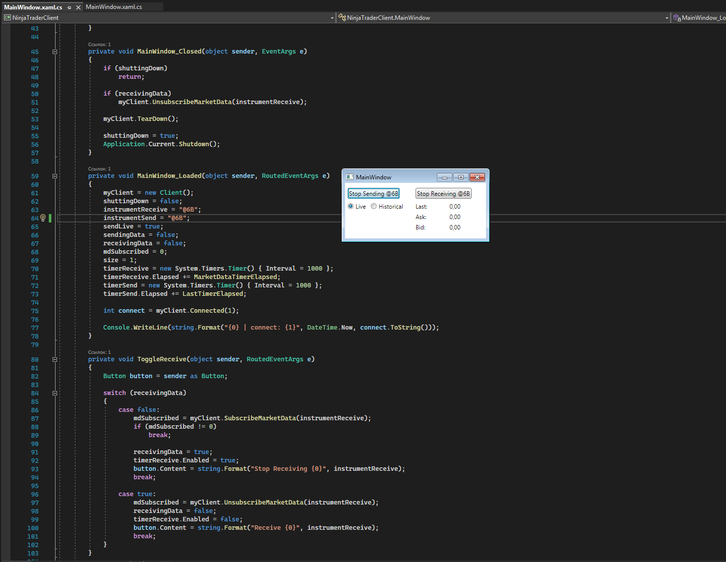 Support for the API is limited from NinjaTrader Support. We are not able to assist with any code in an application external to NinjaTrader. We are able to detail the usage of any methods available from the API.