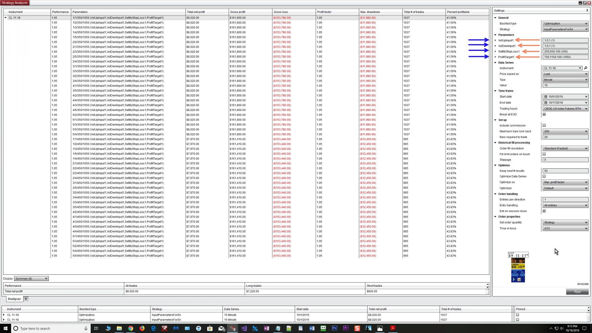 Then I did a couple of Strategy Analyzer runs while using the Continuum data-feed.