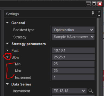 I can see the parameters in the list but they don't have the Min/Max/Increment fields.