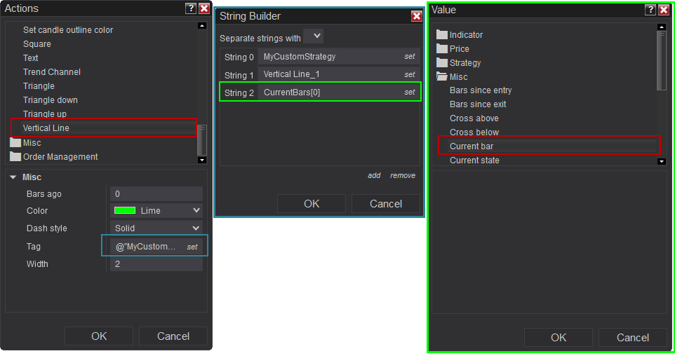I want to draw, for example, a vertical line with the condition of a falling MACD and it must be under 0.