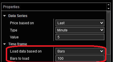 By way of example, within a Chart, the DataSeries Properties can be configured to specify the Time Frame based on Days or Bars (below).
