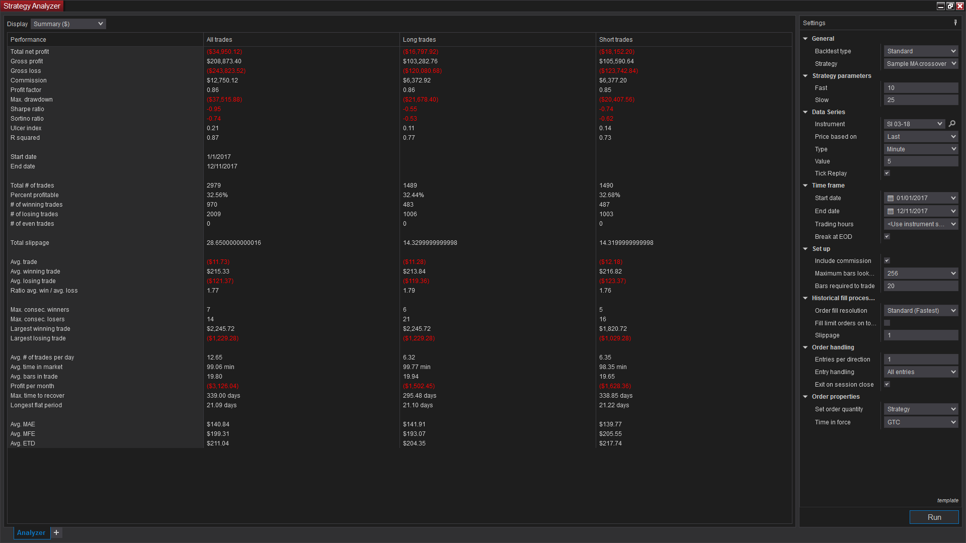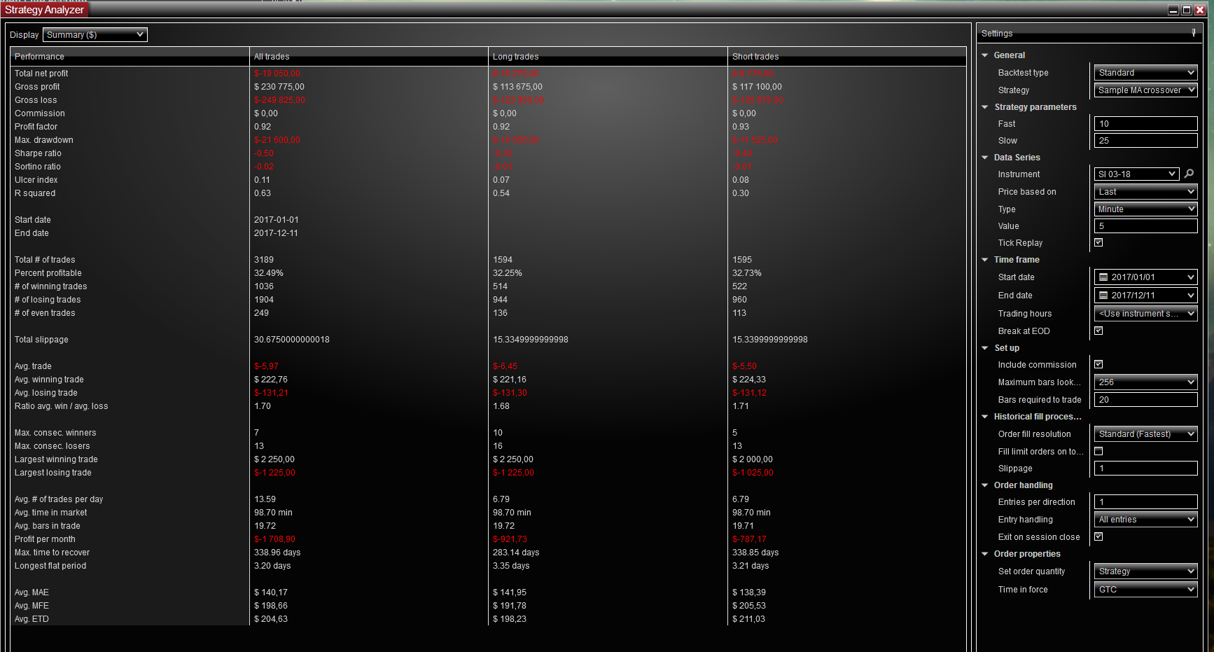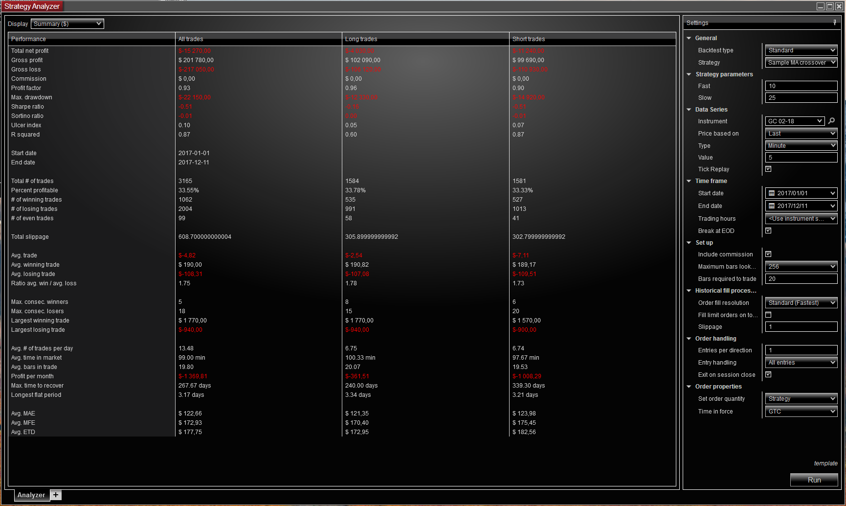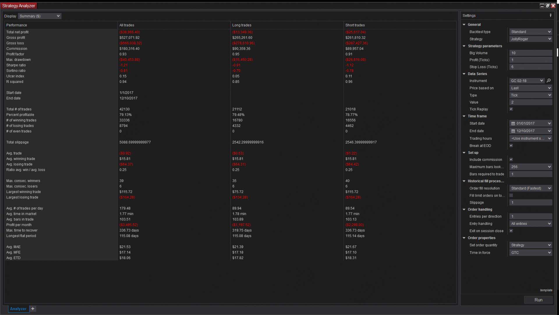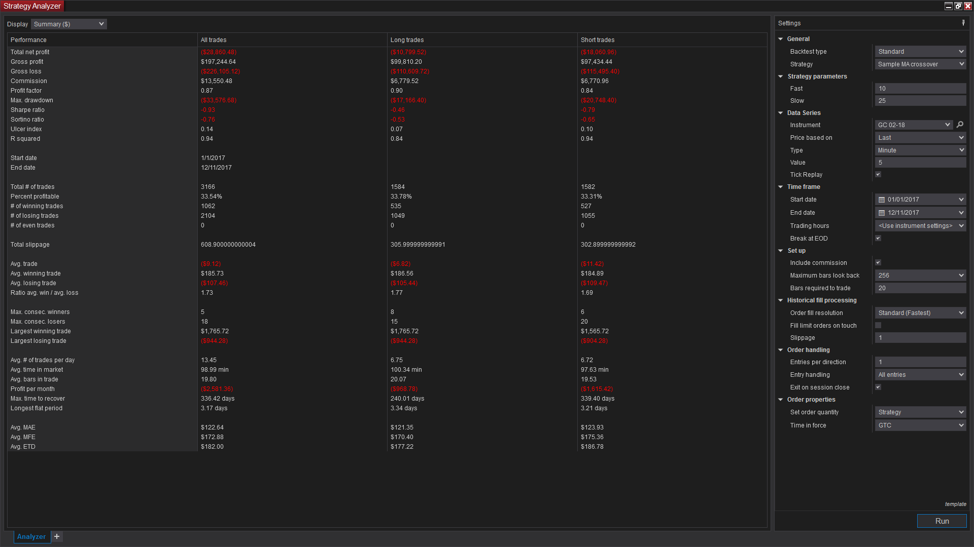 At this point you can reopen the Strategy Analyzer and run your back test. Performing these steps on both platforms and downloading the data from the same provider will give you the same data to produce the same results. You may wish to connect with the same account at different times to rule out issues with the provider.