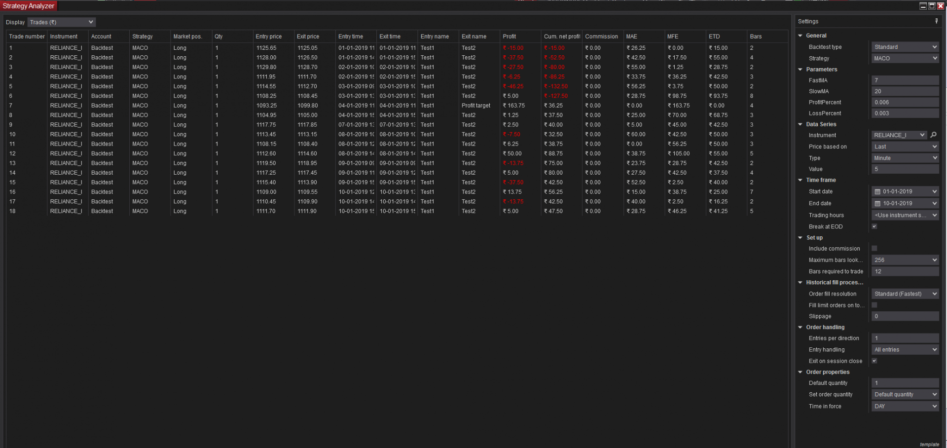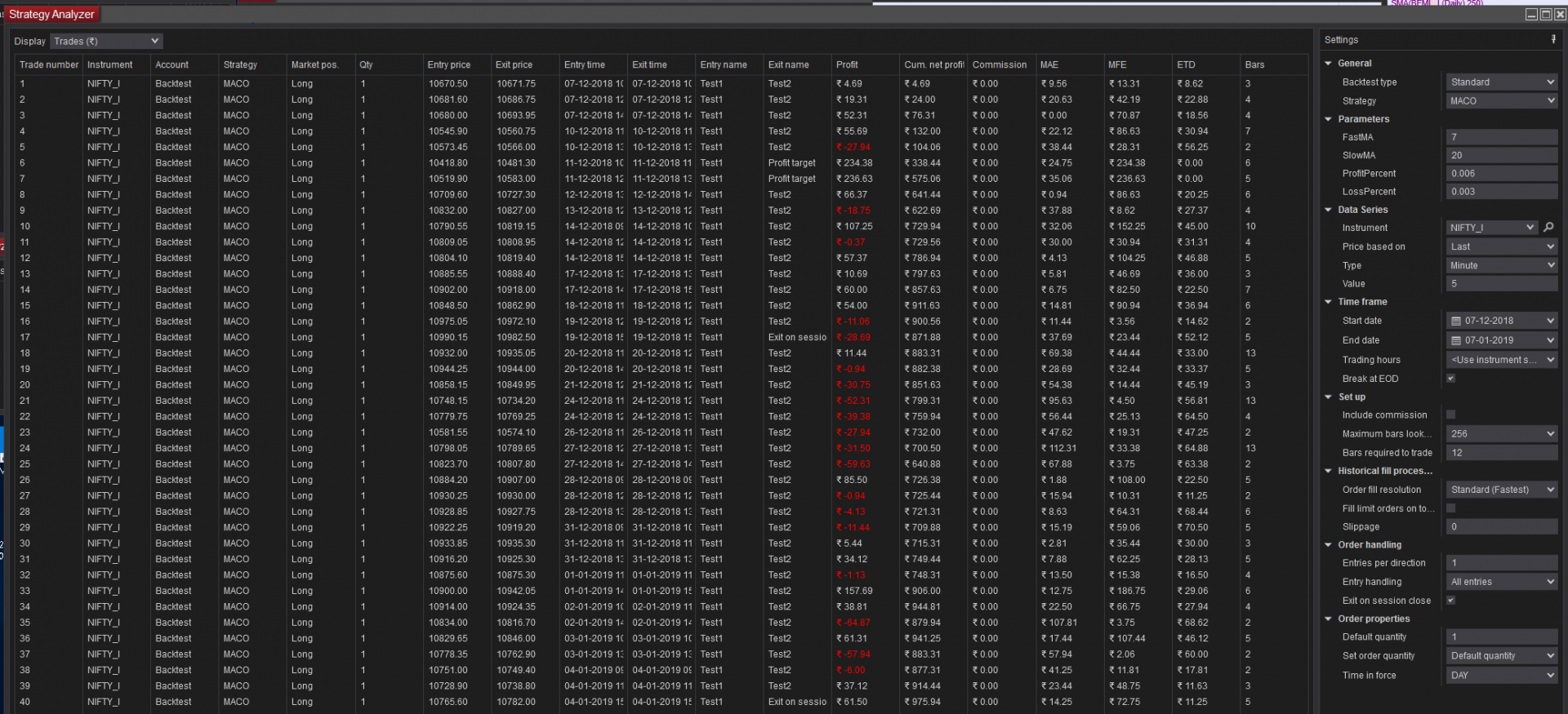 Strategy Analyzer - Trade Profits