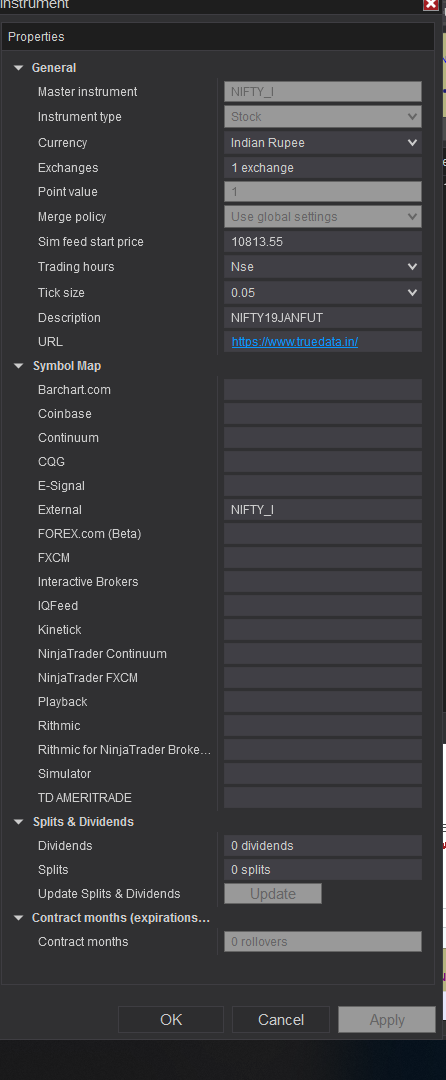 Can you provide a screenshot of the NIFTY_I as you have it set up under Tools --> Instruments? Please select the instrument after searching for it and then 'edit' and take the screenshot.
