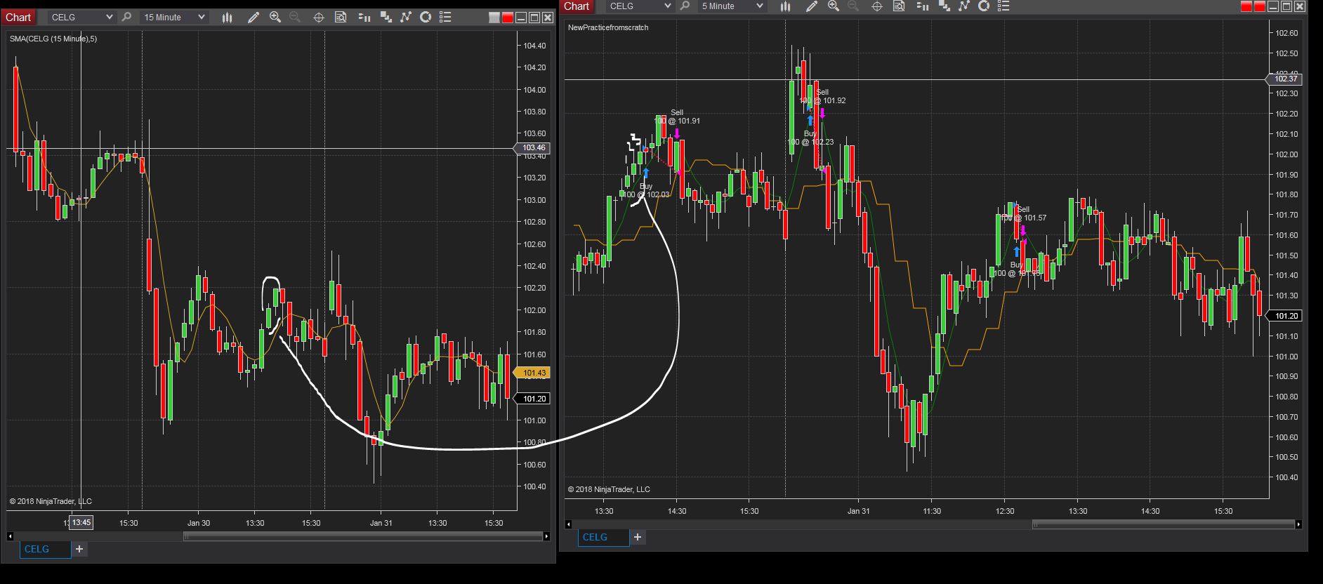 Now the next step was to use the 15min 5ma along with my enterLong strategy.