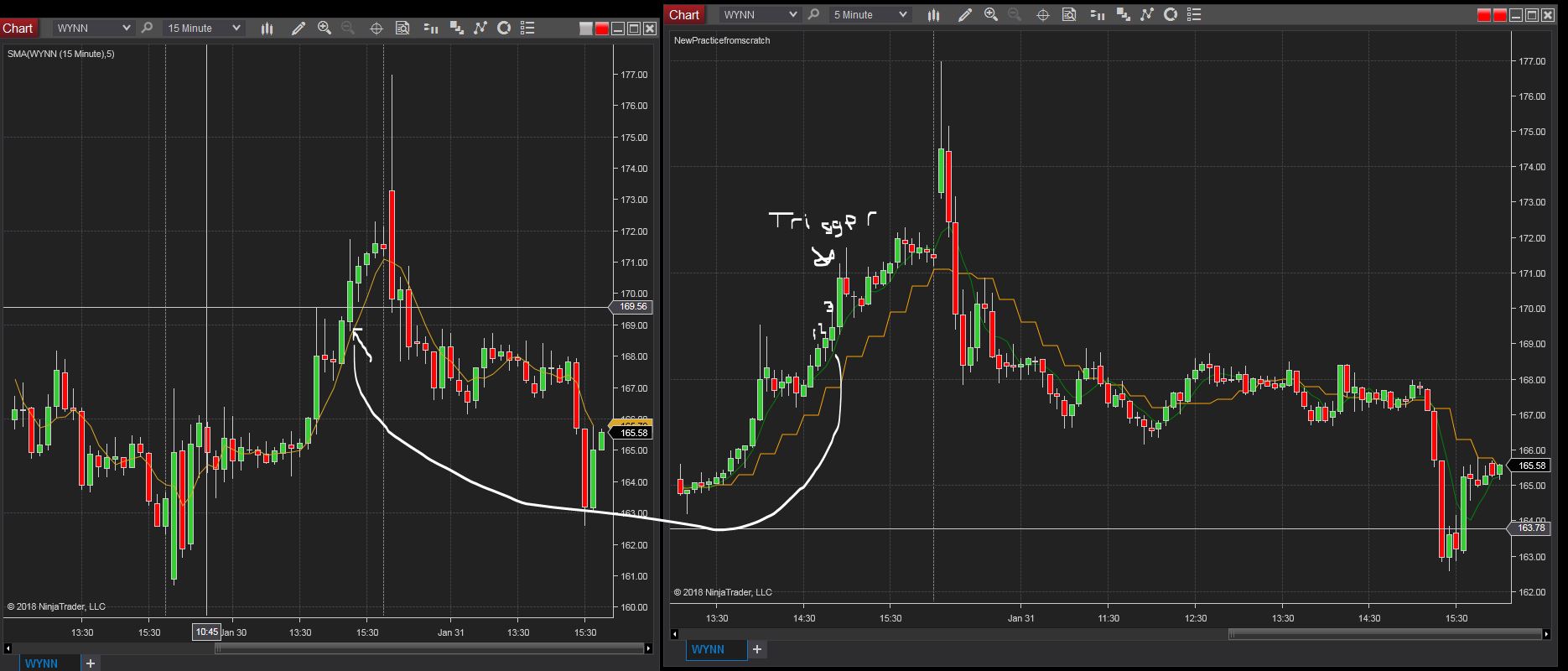 However, the video I provided, only the last 15minute candle supported the 5ma but within the 5min series. The previous 15-minute candle didn't hold and I think that is why it didn't trigger a an entry.