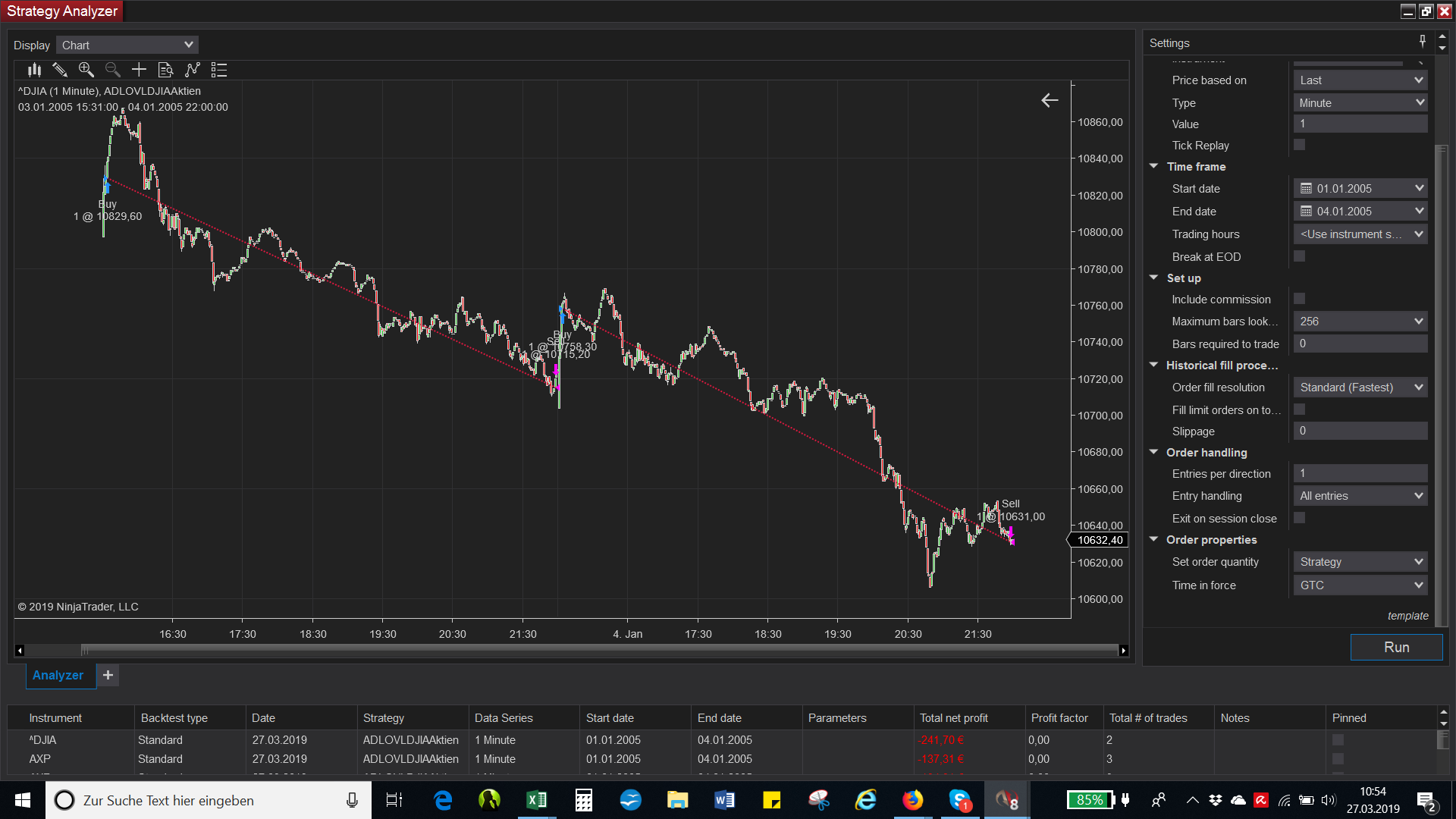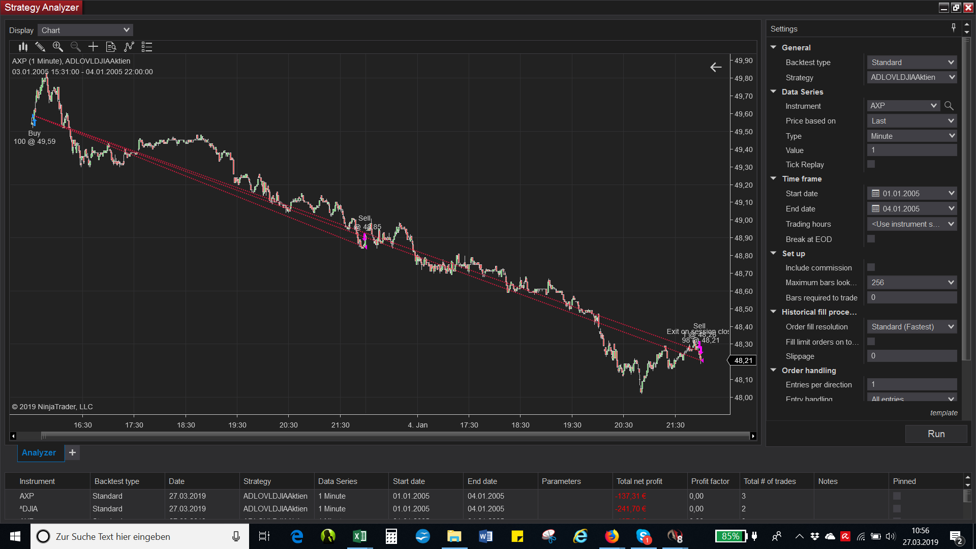 Then the strategy opened all trades for the choosen period in advance and closes it out one by one by every exit event.