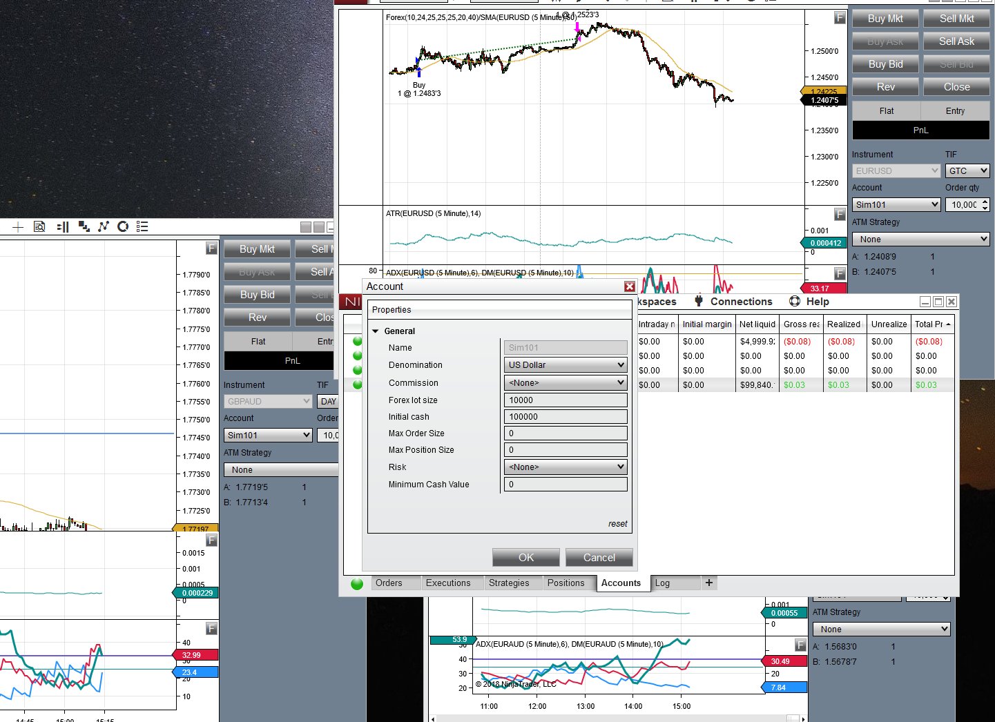 The entry line shows up but the stop and target don't. And it's still not reading the P/L. Is this because it is a Forex Sim trade?