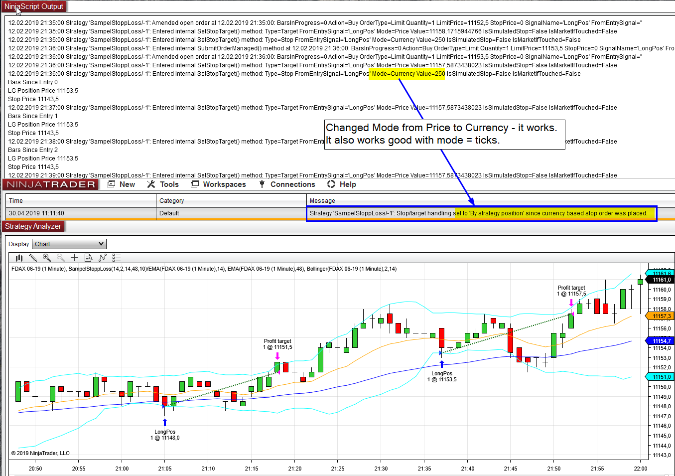 BUT: I changed my stopp mode to "currency". It works as expected. Also Mode = "ticks" works as expected. I will not use "Position.AveragePrice" for Stopp Loss calculation any more, as it is also simpler to use the tick mode.