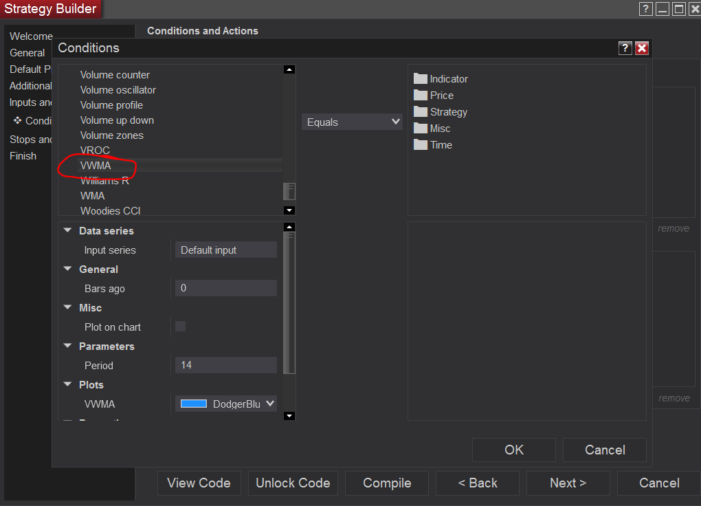 The Order Flow indicators cannot be used in the Strategy Builder.