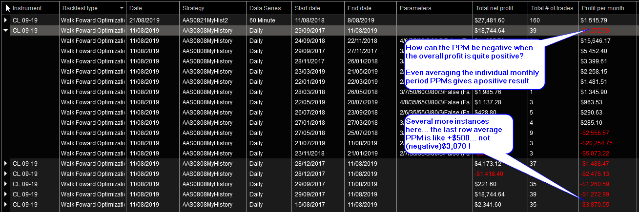 This is really worrying... as I routinely look at the Profit per Month to identify strategies/parameter settings worthy of closer attention.