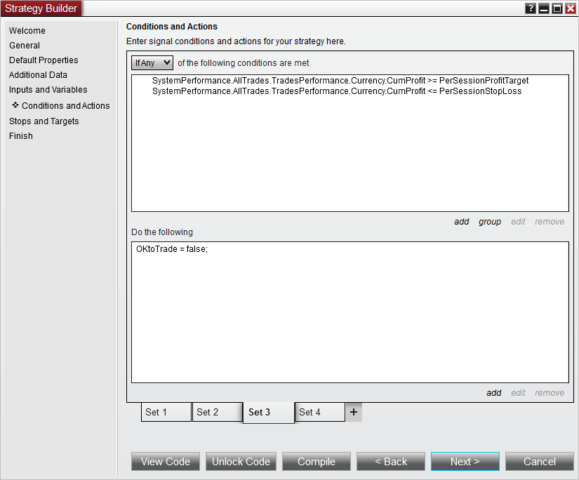 So If I get it, you are saying that the Setting the state to Real Time means that it only looks at current data and not historical data when evaluating the situation. If so, then prior trades are not taken into account before the strategy is engaged... so my theory about why things are not working (not taking any trades) based on the targets already being met in historical data is not correct if indeed the state is set to Real Time, does that sound correct?