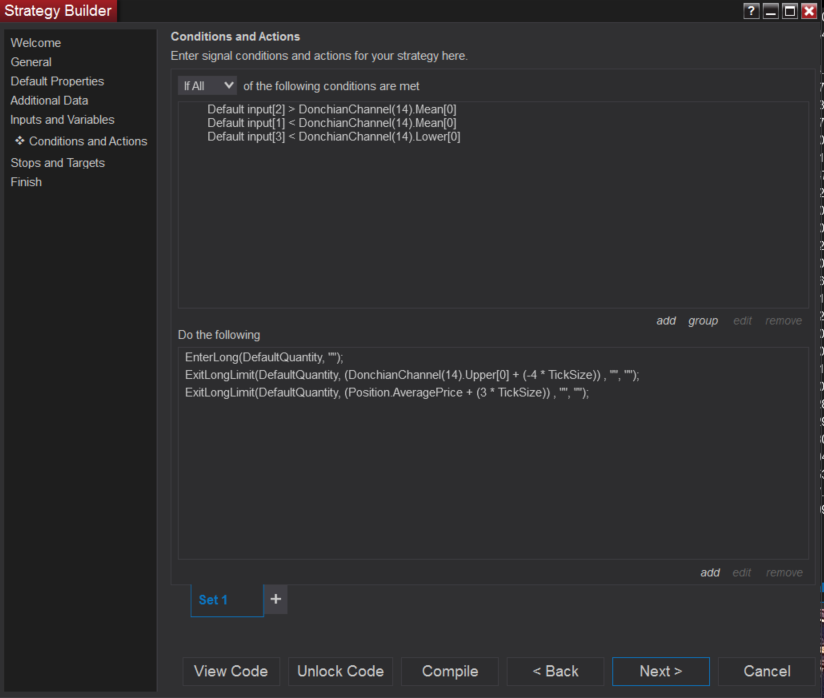 Code example below, as output by the strategy builder.