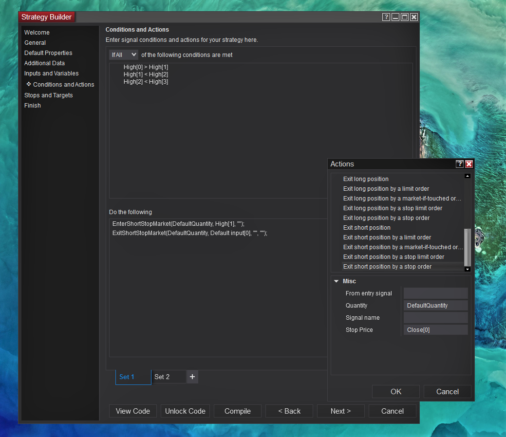 Incorporating stop losses in strategy builder