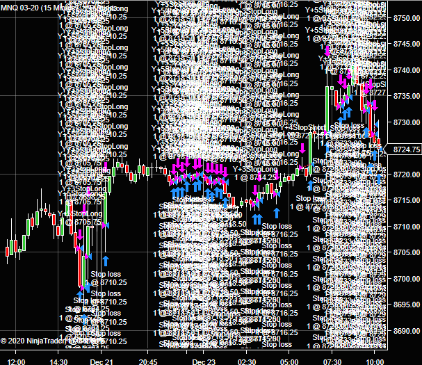 Half of the entries in my strategy are intrabar entries, the other half enter at the end of the entry candle. I run my strategy on OnPriceChange. I use a 15-minute candlestick series, as well as a 1-range series.