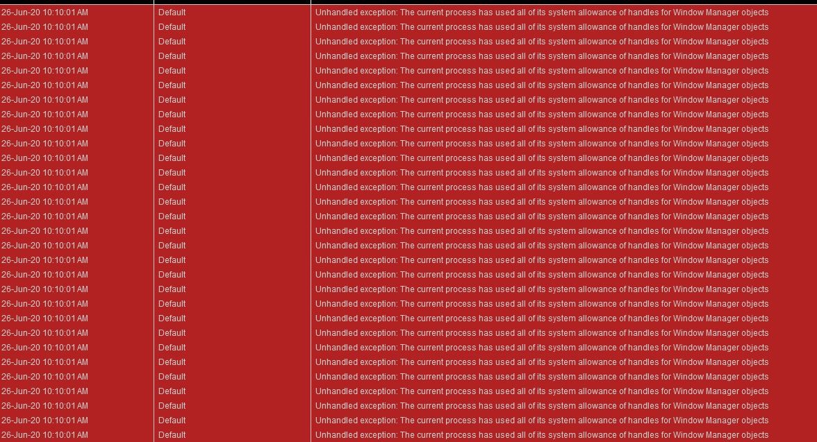 Here is a snapshot of my log, it literally maxed out the number of window popups allowed in windows