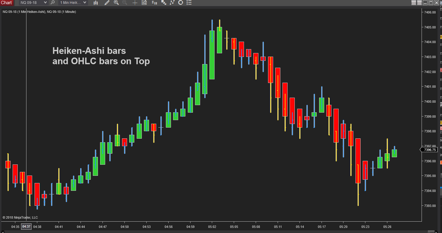 However the challenge I'm having is in Heiken Ashi when the next bar opens, it opens a few ticks in the Green as it is by design. So therefore which is considered the Open? Is it where price really opened? Or is it the bottom of that candle?