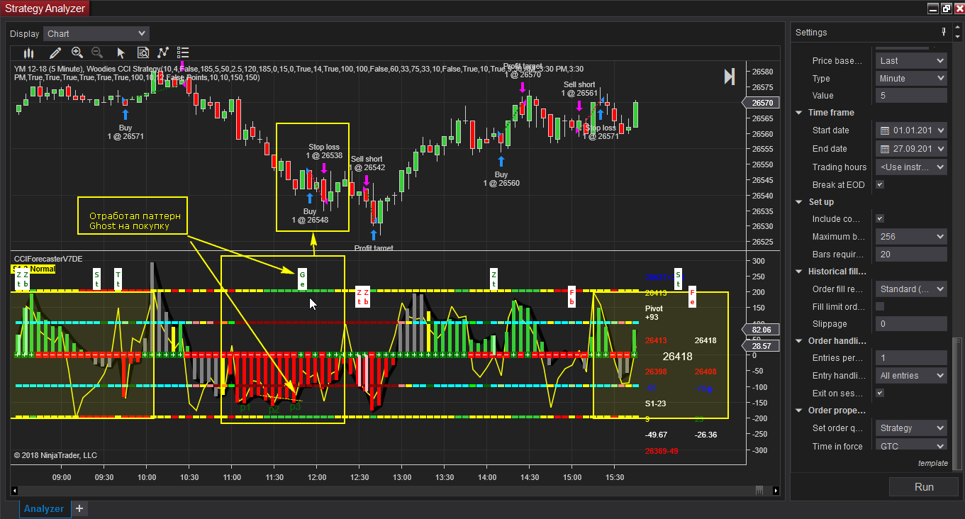 Have you tried backtesting the WCCIStrategy strategy from the Russian forum? If so do you see data in the chart of the strategy analyzer?