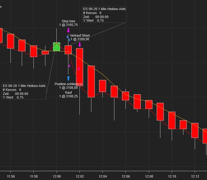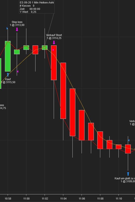 this is strange. I tested it today again and it didn't perform as it should. I use HeikinAshi bars (1 Minute) in the strategy window and also in the backtest and chart.
