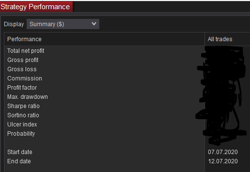 However, when I choose "Strategy performance --> Real Time and Historical" it shows only data/trades for about 5 days back (e.g StartDate = 07.07.2020, End Date=12.07.2020).
