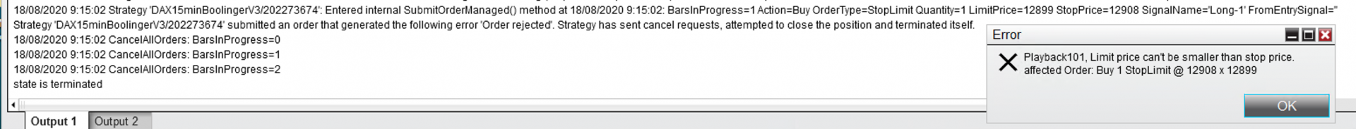 This means that instead of using a stop limit with invalid prices, use logic in your script to submit a limit order when the price is touched.