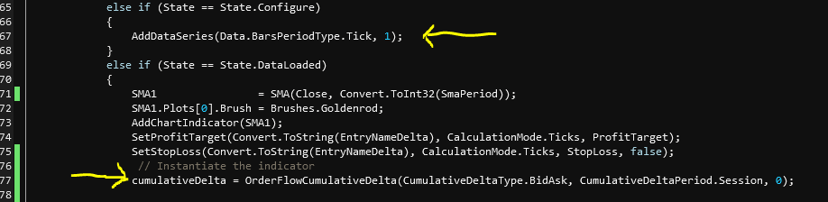 "Calling the OrderFlowCumulativeDelta() method by reference"