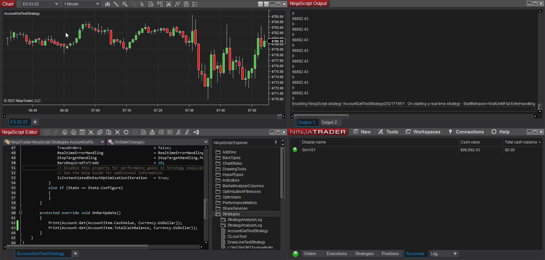 But I get this error: "TotalCashBalance does not exist in the type NinjaTrader.Cbi.AccountItem