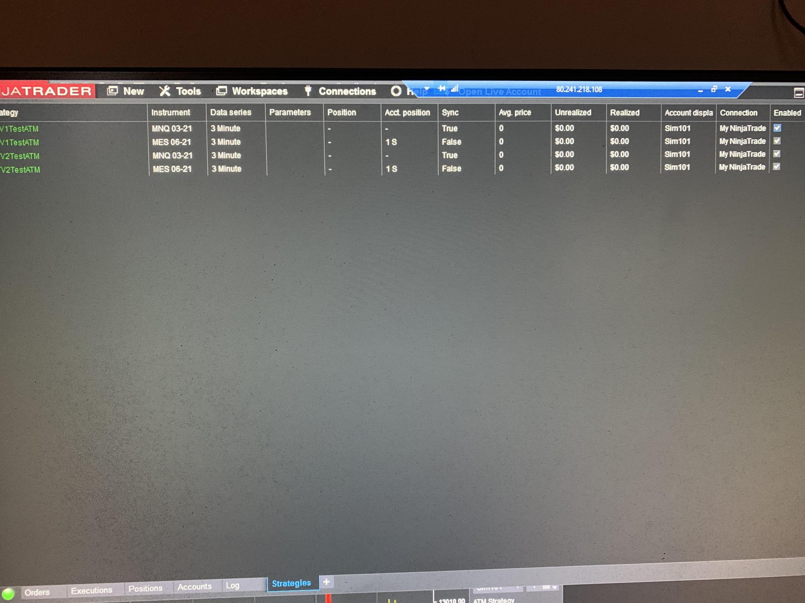 Even some times with single strategy and single account also i face sync issue where strategy will not run contineously , but after disable and enable again it works fine.
