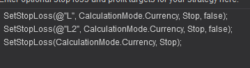 You have created 3 SetStopLoss() , remove the two that are tied to signals L and L2, and test again with just the one SetStopLoss().