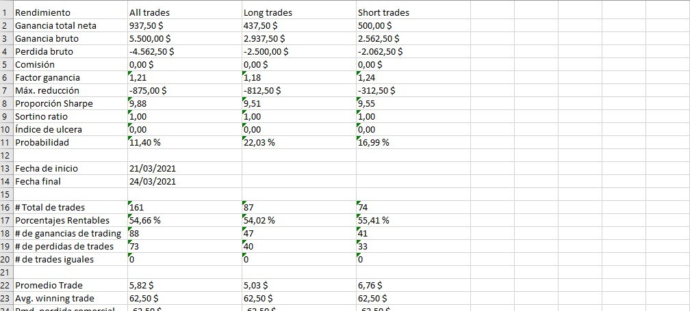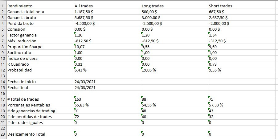 I would like to be able to analyze a strategy and get results more or less equal to my backtesting, or at least 99% similar.