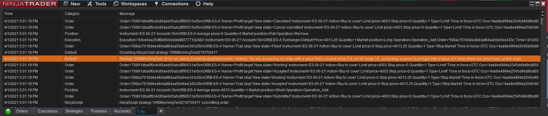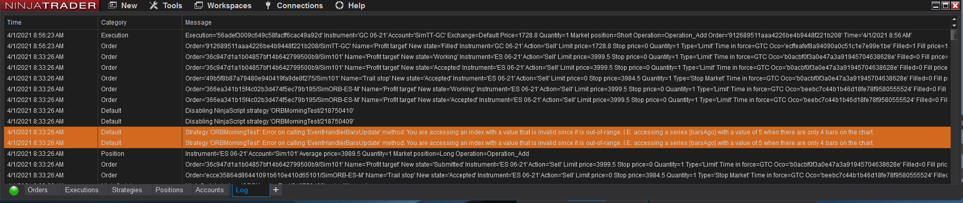 I have added it to the Strategies, but it appears with today's date and it will only execute today, not every day going forward. To do that I need to add it every day...what am I doing incorrectly? Since it back tested fine (I run it for the past 3 months, 1 month, 2 weeks and 1 week), I thought it was ok. But while the back test run every day in the selected time, the live on the Sim account does not. See attached screenshot (red circled). The other strategies are from a third party and they run just fine, but I do not have the source code to check...