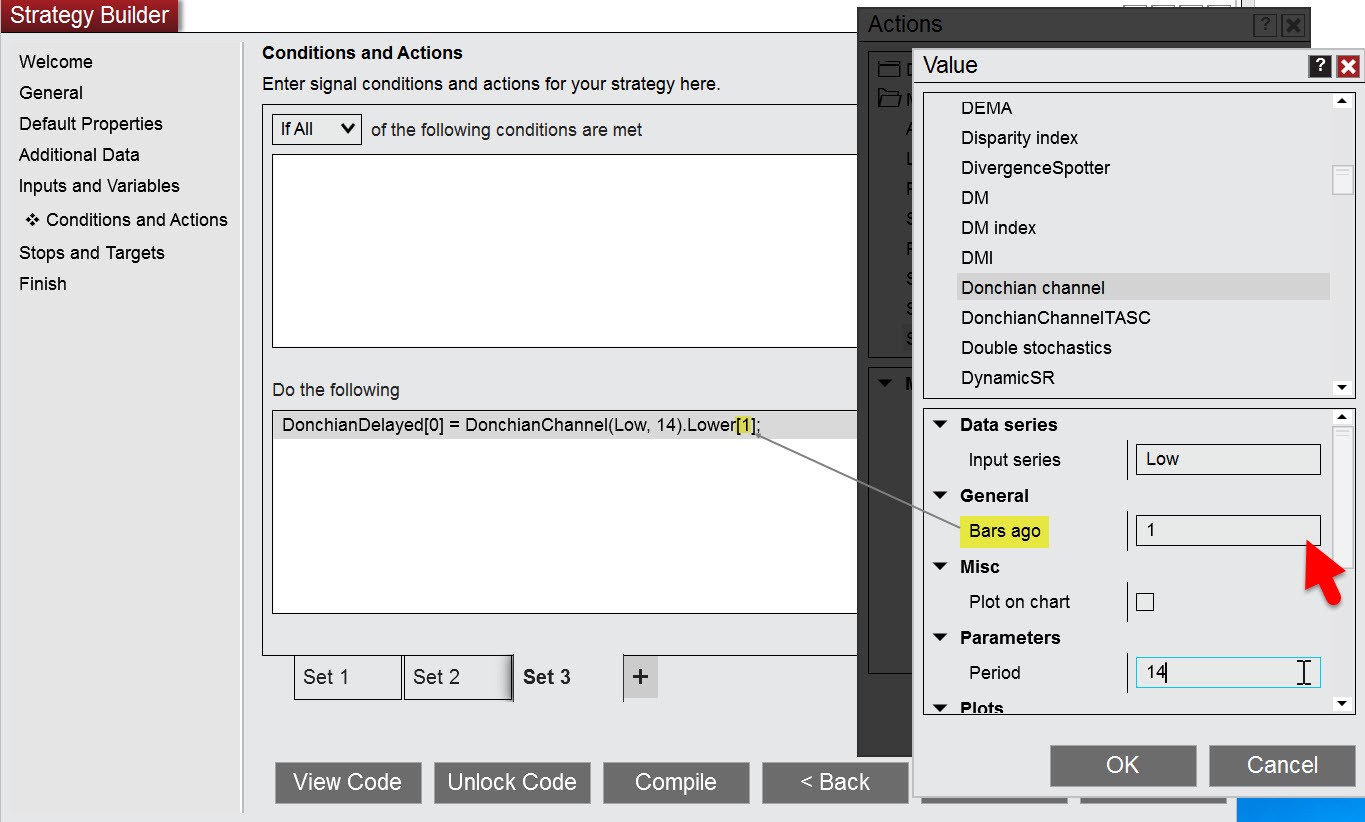 This request for 'Ability to use set for bars ago values in the Strategy Builder' is being tracked with ID# SFT-5235.