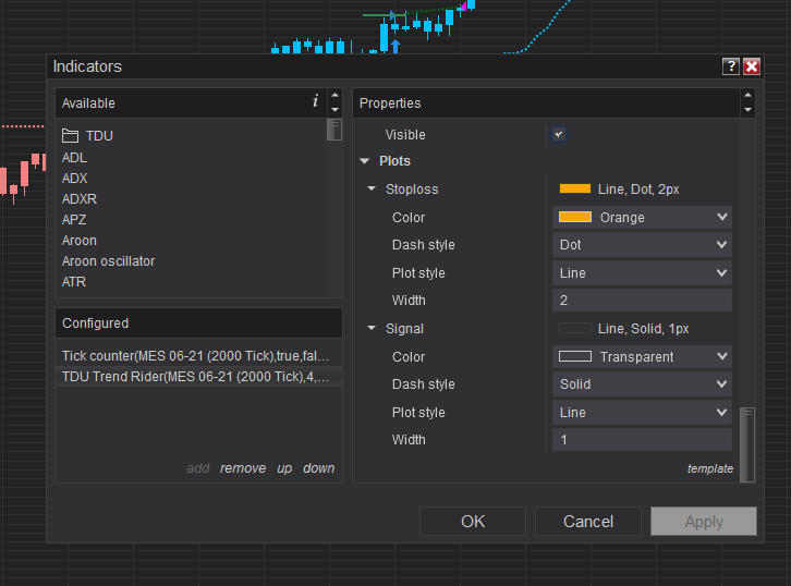 I have automated my entries at the horizontal line with the strategy builder but cannot find a way to automatically set the stop loss to the indicators. The indicator has signal plots like "2" for a BreakoutLong.