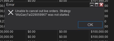 Here is another error that pops up, telling me the strategy isn't srarted where then are 7 instances of the strategy running.