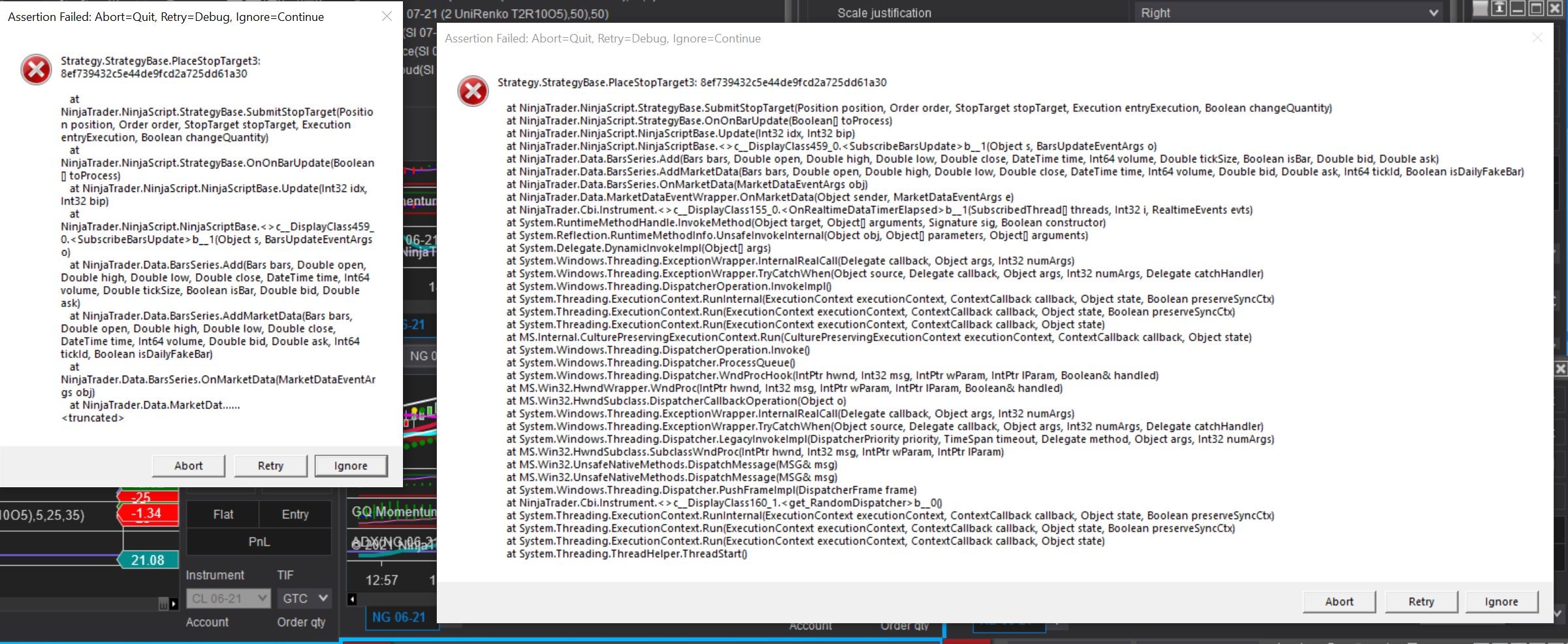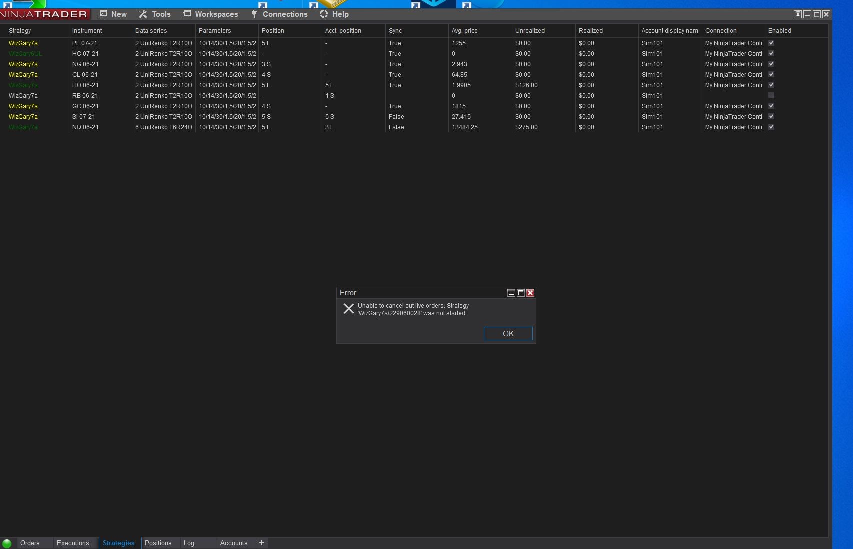 I am having problems running a strategy in SIM on multiple symbols where at times many error messages appear (see attached) and the strategy is also disabled at times.