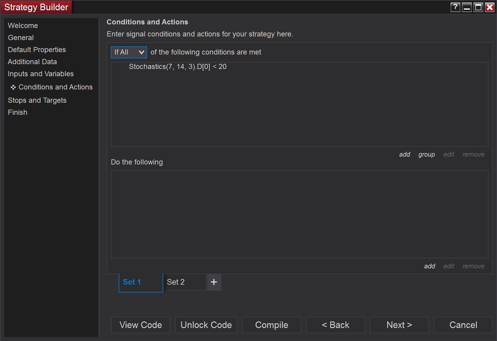 I will not be able to spend time assisting with custom strategy logic. From what I see in your screen shots, you need to set the bool variable in the first set to true in the Actions list. In the second click Add, then check that the bool variable is Misc>True.