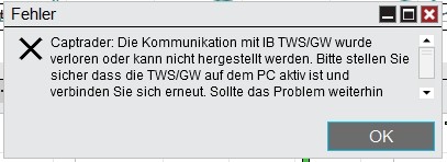 If i interrupt account connection of IB-Gateway to simulate reconnection behaviour on every week, bad server restart, internet interrption etc., strategy shows error message and stopped immediately!?