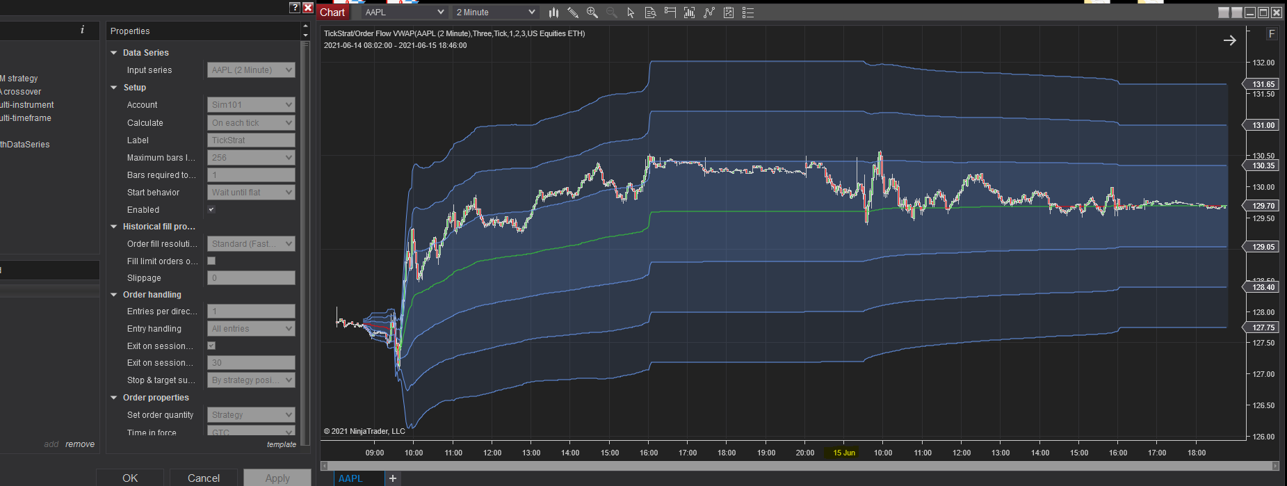 I have a strategy that uses Calculate.OnEachTick and Order Flow VWAP using VWAPResolution.Tick added inside the strategy. The strategy works well with the indicator when using Realtime data feed from IB, but the VWAP indicator breaks during historical processing (no session resets occur) since IB doesn't have historical tick data. Because the strategy uses VWAP for certain calculations, it is important that the VWAP bands reset at the beginning of each session and not where Historical transitions to Realtime. In the screen shots below, the one that has no historical tick data doesn't see the session breaks but the one with tick data resets correctly at the end of every session.