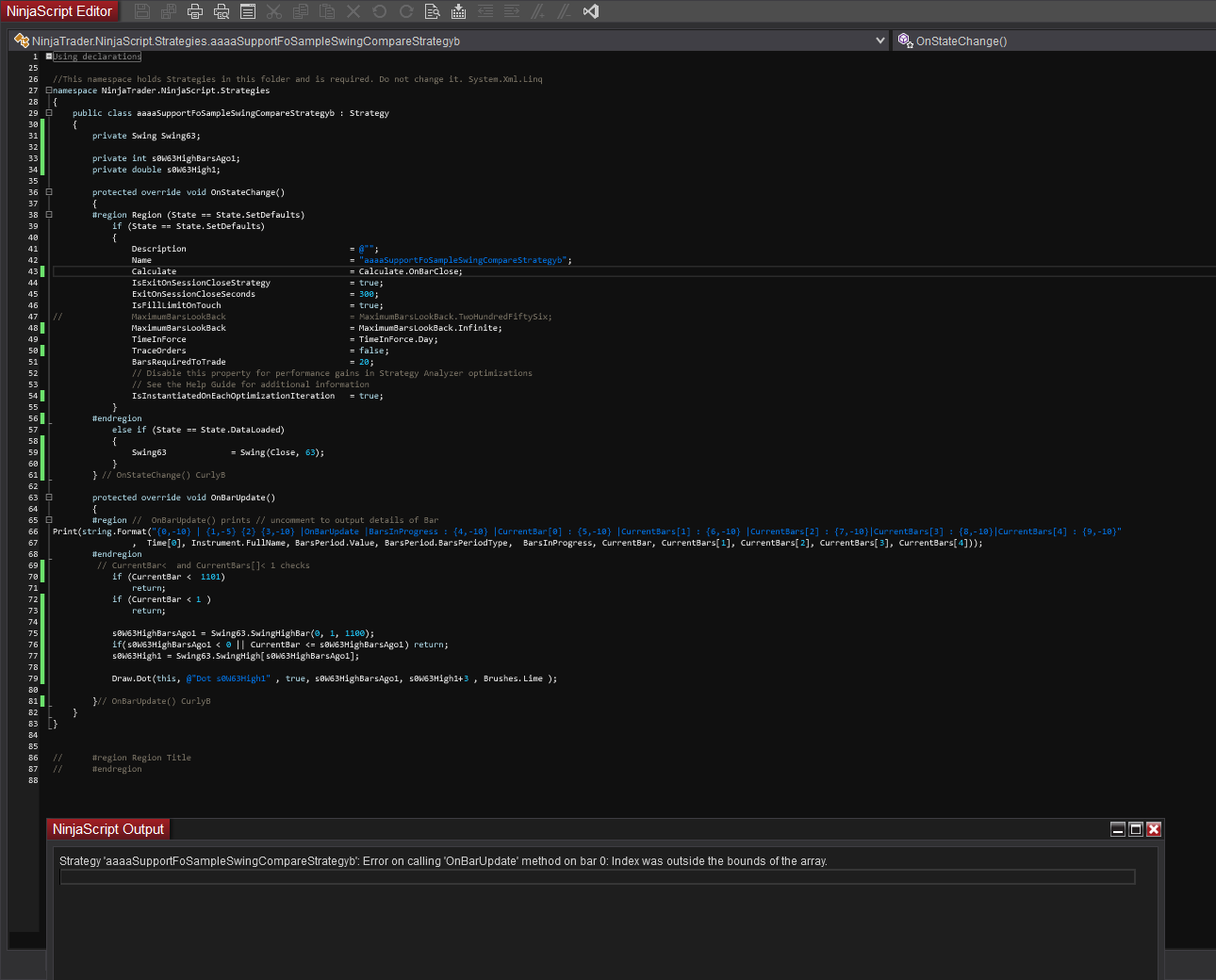 as shown in an extra attachment, we are set as MaximumBarsLookBack.Infinite.Last edited by Amedeus; 07-22-2021, 09:54 AM.